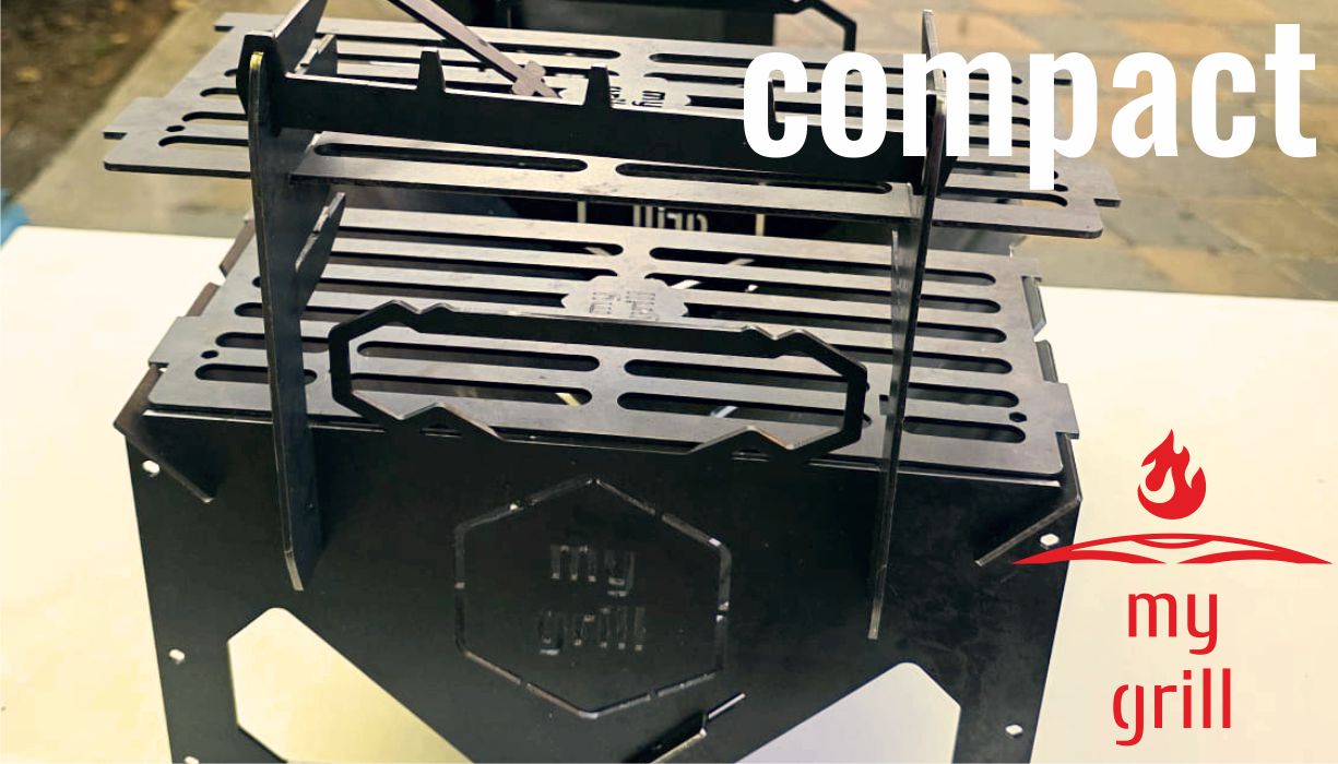 - Construcție robustă si extrem de mobilă – se montează fară scule, în secunde, se curață foarte ușor si se transportă compact într-un bloc de doar 17,5 mm grosime. Împreună cu distanțorul și frigăruile (accesorii opționale) ajunge la doar 25 mm grosime. Toate elementele se depozitează în siguranță fiind fixate cu șuruburi de inox și piulițe fluture.