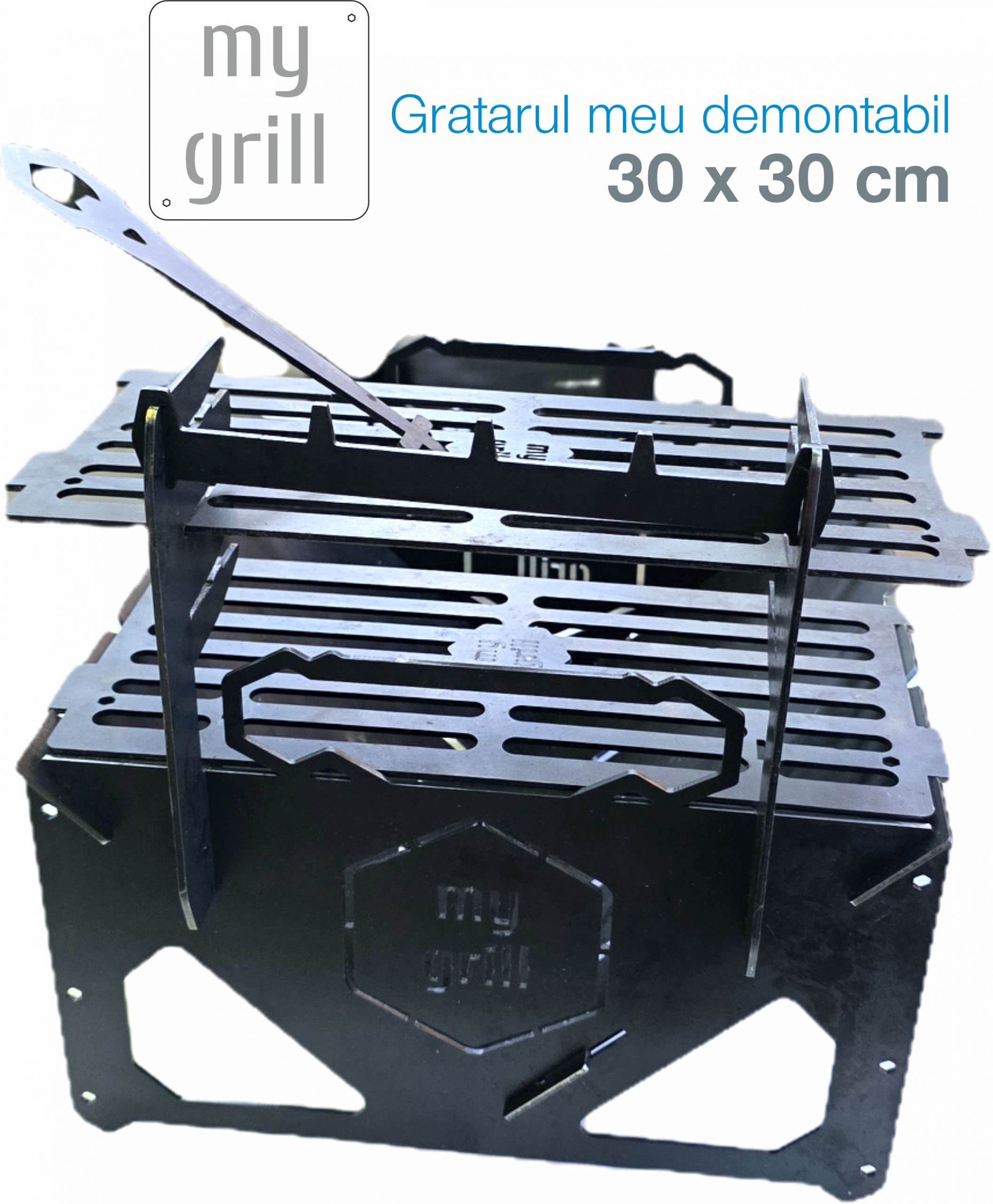 Descoperă plăcerea gătitului în aer liber, grătarul nostru cu carbune este demontabil, ingenios si versatil, cu 2 zone de grill care pot fi înălțate față de foc după voie, cu țepuse sau cu plită (accesorii opționale), conceput pentru o experiență curată și confortabilă. Cel mai avansat design de pe piata, gândit pentru funcționalitate ți estetică.