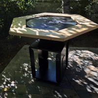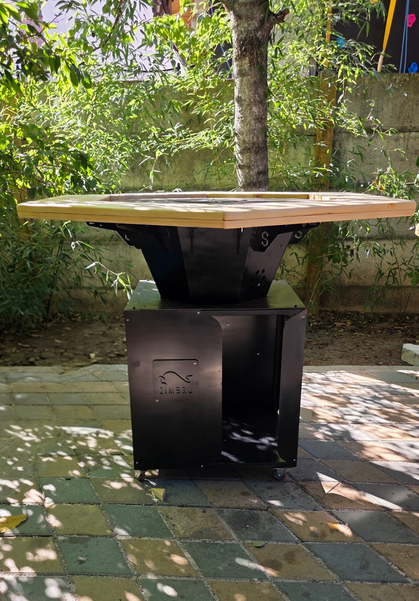 Grătar cu plită hexagonală sau octogonală și vatră de foc fără fum (smokeless)