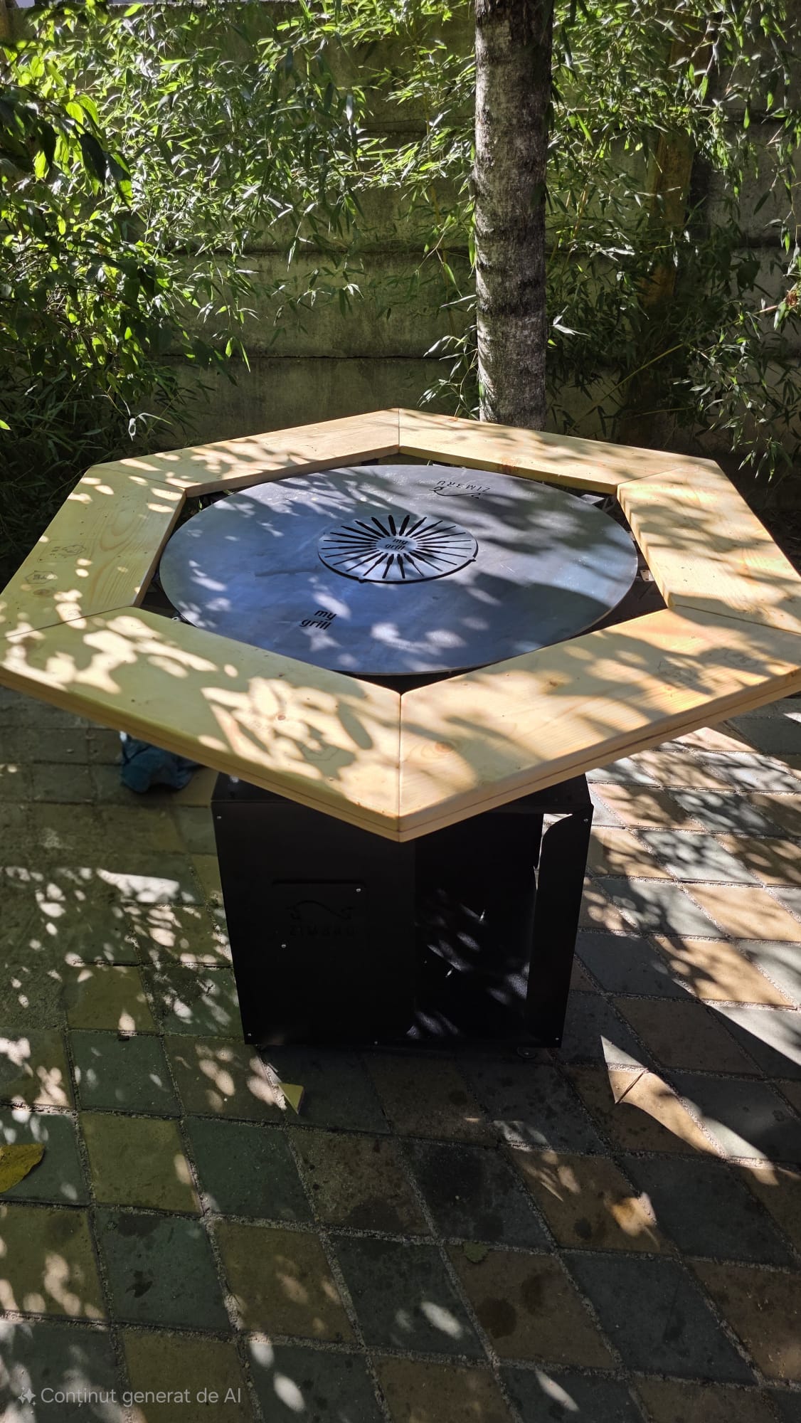 Grătar cu plită hexagonală sau octogonală și vatră de foc fără fum (smokeless)