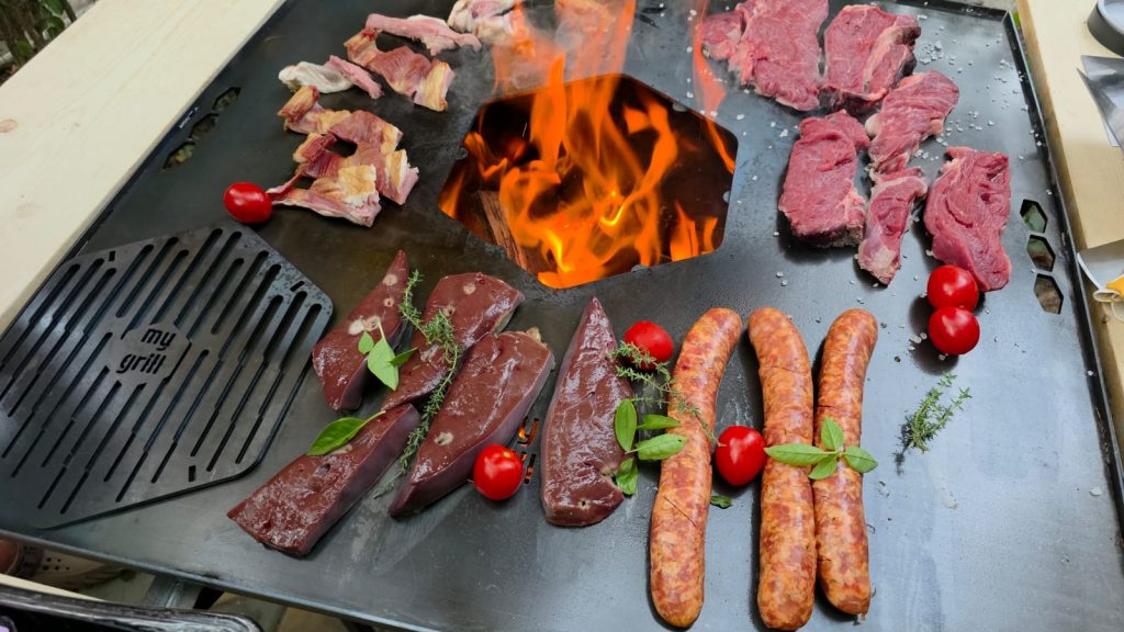 - Gătit mai rapid și cu consum mic de lemne: folosind o plită (plancha) de 4 mm sau 5 mm grosime, efectul de bombare / ridicare a centrului este mai accentuat și atunci grăsimea se scurge mai repede, stă in contact mult mai puțin cu mancarea, nu se scurge in foc si nu arde generand compuși nesănătoși și nici fum.