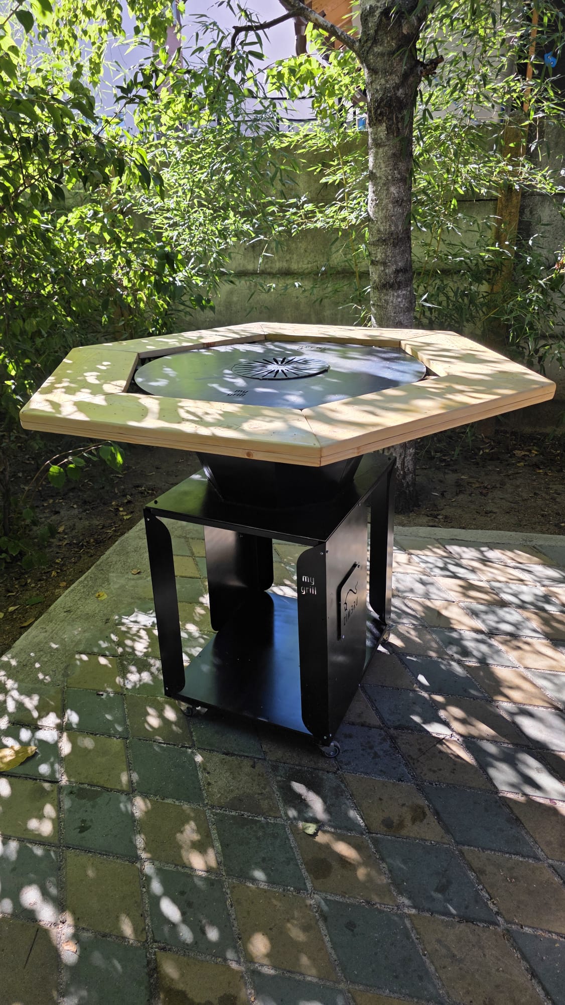 Grătar cu plită hexagonală sau octogonală și vatră de foc fara fum (smokeless) – 4 în 1